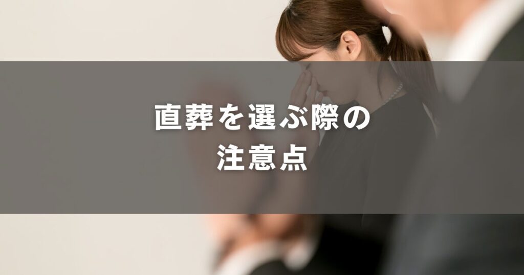 直葬の場合、通常の葬儀に比べて参列者が少ないため、友人や知人にお別れの機会を提供できない場合があるため、事前に理解を得ることが重要です。